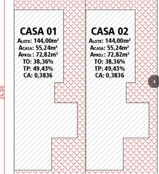 Área Construída com 55,24 m², Área do Terreno com 144,00 m².